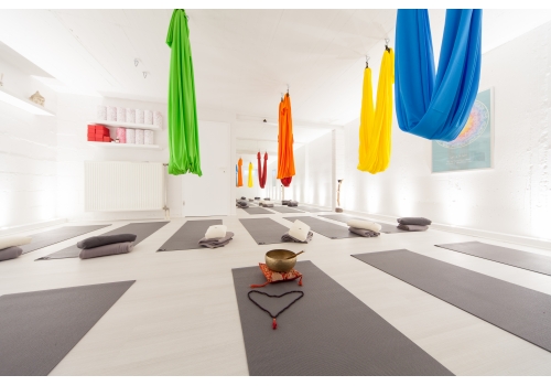 Neben den Hauptkursen in Hatha Yoga, bei dem unter anderem der Rücken gestärkt und Verspannungen gelöst werden, Sensitive Yoga, das sich auf ruhige Bewegungsabläufe konzentriert und das dynamischere Vinyasa Yoga bietet Yogaleben als einzige Yogaschule in Krefeld Aerialyoga an. Dabei schaukelt man in einem riesigen Tuch, das von der Decke hängt. Diese Yogaart ist eine Mischung aus klassischen Übungen und Elementen aus der Akrobatik, mit denen eine optimale Dosierung von Flexibilität, Leichtigkeit und Lockerung erreicht wird. Und wer einmal die übers ganze Gesicht strahlenden Mütter mit ihren Babys beim Verlassen eines Mutter-Kind-Yogakurses gesehen hat, weiß: Yoga ist kein Sport, Yoga ist eine Lebenseinstellung.
