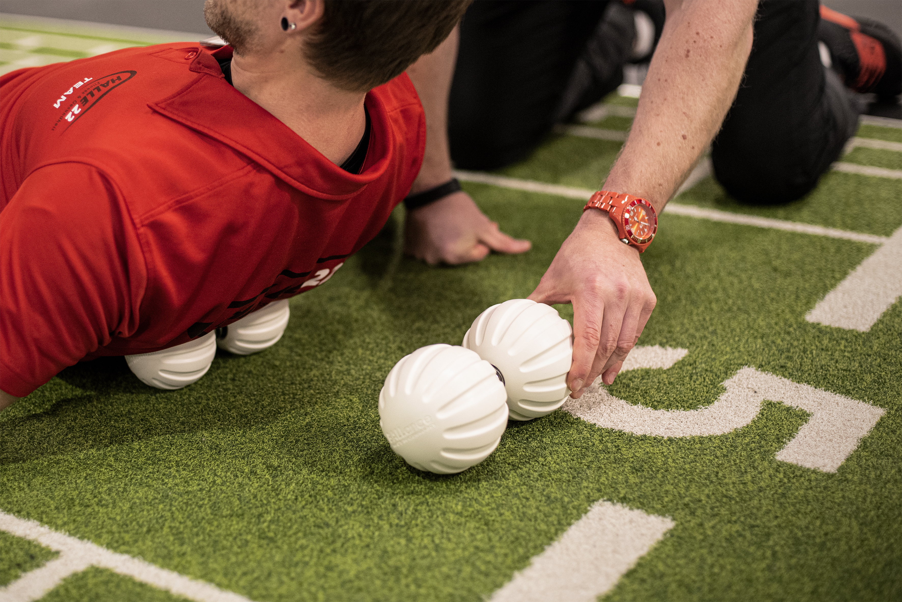 Ein eigener Functional-Bereich mit Kursen und freiem Training ist im Jahr 2015 in der Halle 22 entstanden. „Wir springen nicht auf jeden Fitnesszug-Kult auf, aber hier stehen wir hinter“, erklärt der 28-Jährige. „Das Training ist vielfältig. Du stärkst Beweglichkeit, Gleichgewicht und Körperspannung gleichzeitig und arbeitest immer mit dem ganzen Körper. Das macht was mit dir.“ Ist Wiesenhütter als ehemaliger „Ninja Warrior“ passionierter Trainer im Functional-Bereich, haben sich andere Kollegen zum Beispiel auf das Bodybuilding, das Five-Konzept oder den Freihantelbereich spezialisiert. Ein enges Betreuungskonzept, das individualisiert auf die Bedürfnisse jedes einzelnen Mitgliedes eingeht, gehört zum Geheimrezept des Sport- und Gesundheitszentrums. „Wir nennen das Aktivcoaching“, beschreibt Mathes. Kurse, Trainingsplanerstellung, Check-Ups und Präventionsangebote sind da genauso integriert wie die Sichtbarkeit auf der Trainingsfläche oder das Arbeiten mit digitalen Geräten. „Mit einer eigenen App und diversen Möglichkeiten für unsere Mitglieder stellen wir uns schon seit Langem auch der herausfordernden Digitalisierung“, ergänzt der Marketingbeauftragte und lacht. „Kein Fortschritt bedeutet sonst eben immer auch Rückschritt.“