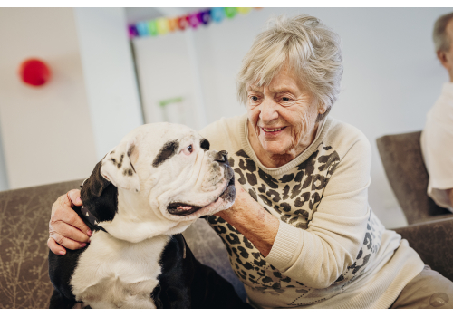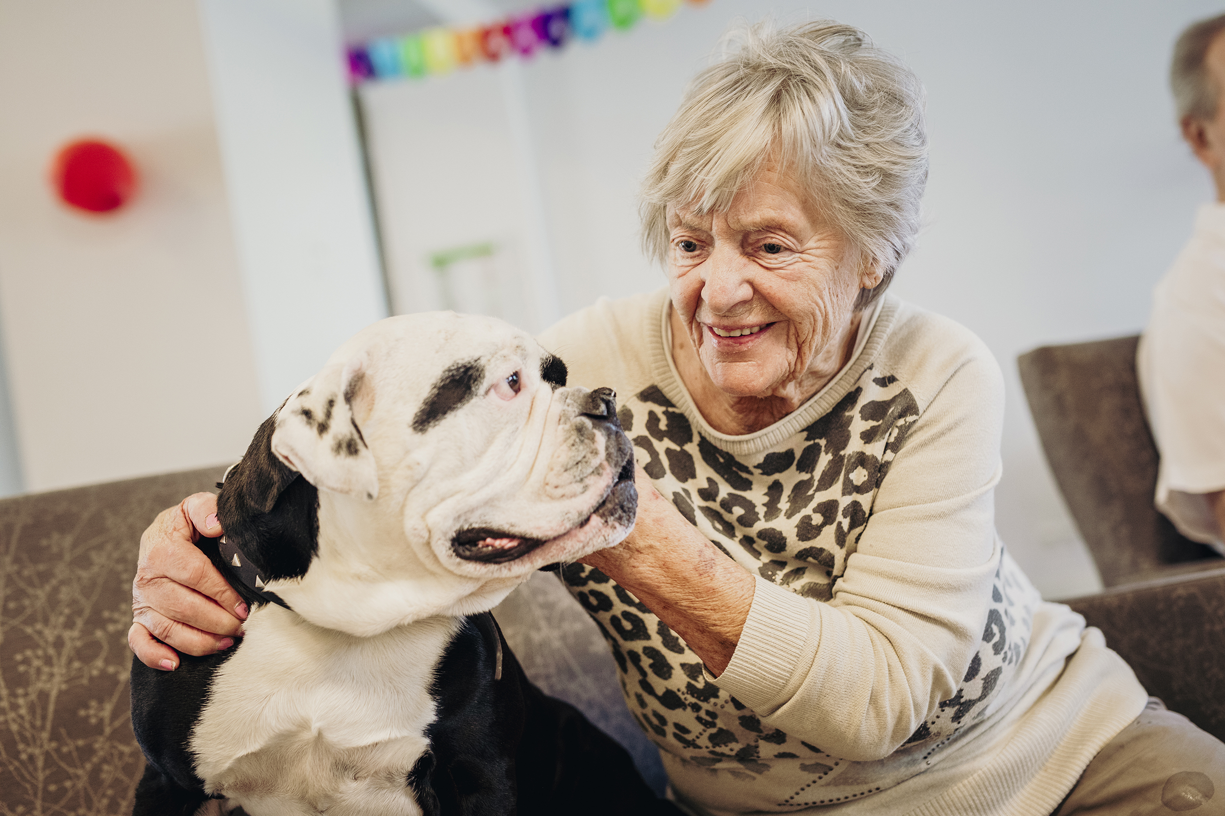 Auch Fortbildung sei ihr sehr wichtig, um die Mitarbeiter zu stärken. So habe sie erst vor Kurzem einen Letzte-Hilfe-Kurs für alle angeboten. „Zwei Kolleginnen sind danach begeistert zu mir gekommen und lassen sich jetzt in der Palliativpflege ausbilden“, freut sich die empathische Heimleiterin über das Ergebnis. „Die Palliative Care, das heißt die Pflege schwerstkranker und sterbender Menschen sowie die Begleitung der oft überforderten Angehörigen, sind meine absolute Herzensangelegenheit.“ Sie spricht aus eigener schmerzhafter Erfahrung, denn ihre ältere Schwester starb 2013 und musste ihren letzten Weg allein gehen. „Doch niemand sollte einsam oder mit Schmerzen sterben“, erklärt Jansen, die seit ihrem 13. Lebensjahr mit Senioren arbeitet. Wenn zum Wohlfühlfaktor das Frühstücken im Morgenmantel gehöre oder die tägliche Currywurst mit Pommes, dann sollten diese Wünsche auch erfüllt werden – kreative Lösungen gäbe es schließlich genug. Daher ist auch Bulldoggenrüde Buddy mit ins Heim eingezogen, der erfolgreich bei Tiertrainer Martin Rütter ausgebildet wurde und mit seiner ruhigen wie zugewandten Art allen Menschen im Haus "einfach nur gut" tue.